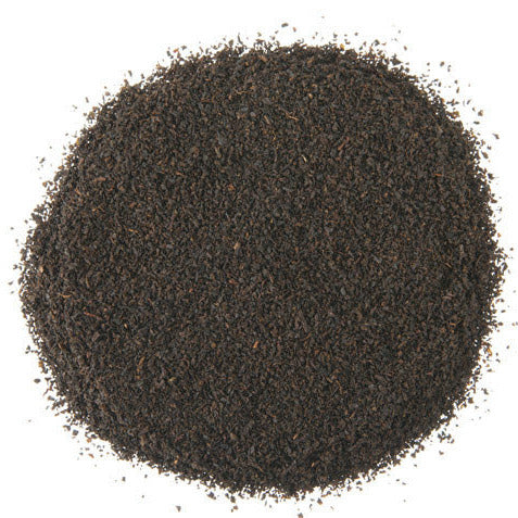 - Fine cut black loose leaf tea = quick steep, strong flavor